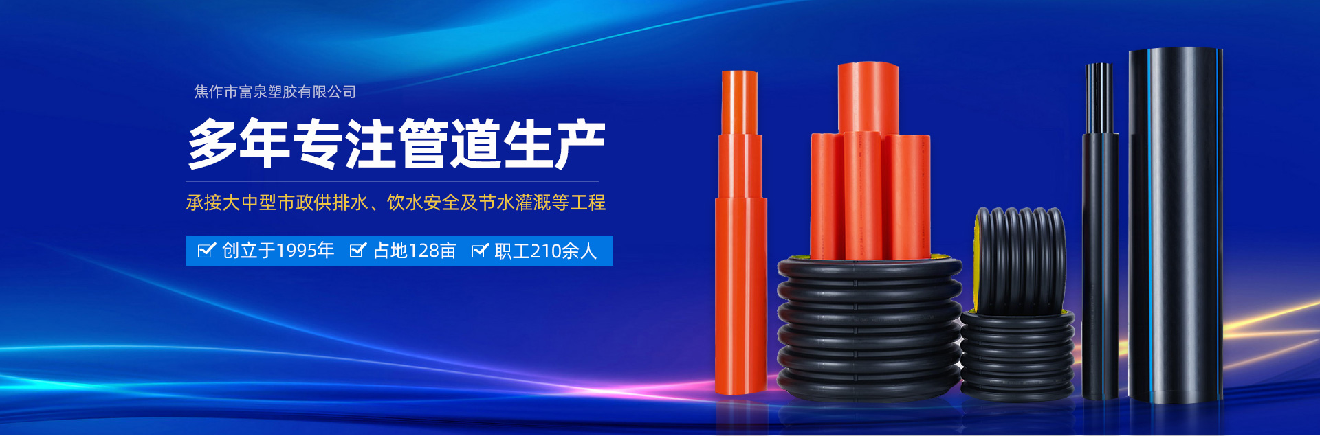 -   焦作市富泉塑膠有限公司,創立于1995年,是一家集研發、設計、生產、銷售為一體的大型管材企業。公司位于太極故里、黃河之濱一一河南焦作溫縣。公司占地128畝,現有職工210余人,其中具有中技術職稱的19人。生產、檢驗設備58臺(套),包括PVC實壁管生產線11套、PE實壁管生產線12套、HDPE雙壁波紋管生產線6套、PVC雙壁波紋管生產線5套,檢驗設備14臺(套)。主要產品有:Φ20mm-630mm、各種壓力規格的PVCU、PVC-M、PE給水管材,PVC-U節水灌溉管材,HDPE燃氣和礦用管材,DN200-800mm的HDPE、PVC雙壁波紋管及各種噴灌、滴灌工程材料。承接大中型市政供排水、飲水安全及節水灌溉等工程?! 「蝗苣z公司重視產品的質量、安全、環保和節能,在同行業中率先完成了“新華節水產品認證”,全方面通過ISO9001:2008國際質量管理體系、IS014001:2004環境管理體系和OHSAS18001職業健康安全管理體系的一體化導入,并建立起規范的現代企業管理體系。公司以“質量”為先導,采用質量跟蹤、多環節把關的方法,組建具有行業水準的企業技術檢測中心,常年委托水利部節水灌溉設備檢測中心、河南省產品質量監督檢驗院對產品跟蹤檢測,并由中國人民保險公司承保產品質量。公司連續多年被河南省水利廳確定為“安全飲水設備、節水灌溉設備”定點生產企業,并獲得“中國名優產品”“質量、服務、信譽AAA企業”“河南省**產品”“河南省水利企業”“河南省守合同、重信用企業”等榮譽稱號?! 「蝗苣z公司堅持“用戶為上”的服務理念,長期以來,全方面關注客戶價值,不斷提升服務水平。服務隊伍常年為客戶的產品設計、施工、安裝提供合理的方案和全程細致、周到、**、快捷的技術服務。公司自成立以來,一直堅持以人為本的宗旨,塑造企業形象,并致力于新產品的開發,憑借雄厚的技術開發能力,先進的工藝制造流程,嚴格的質量管理保證體系,優良的售后服務網絡,已成為河南省大的飲水、灌溉及排水管材設備制造商。產品暢銷全國,而且還以公司雄厚的綜合實力在業界中占據著重要的地位。